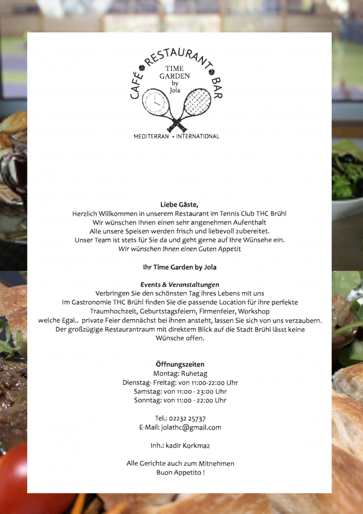 THC Brühl e.V. Tennis & Leichtathletik Postfach 1926 • 50309 Brühl kontakt@thcbruehl.de +49 172 606 90 56 (Vorsitzender) +49 22 32 257 37 (Anlage / Gastronomie)